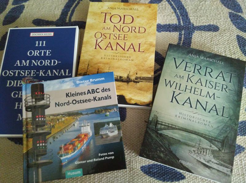 Die Autorin Anja Marschall hat zwei Kanalkrimis Tod am Nord-Ostsee-Kanal und Verrat am Kaiser-Wilhelm-Kanal geschrieben. Im Mittelpunkt dieser historischen Romane steht Kriminalinspektor Hauke Sötje, ein ehemaliger Kapitän, vielgereist und mit reichem Wissensschatz. Der erste Kanalkrimi mit dem Titel Tod am Nord-Ostsee-Kanal klingt ein wenig nach Agatha Christies Tod auf dem Nil, doch diese Assoziation führt in die Irre. Es geht in diesem Krimi um einen mysteriösen Todesfall bei den Bauarbeiten an der Kanalschleuse in Brunsbüttel im Jahr 1894, also ein Jahr vor Fertigstellung und Eröffnung des Kanals durch Kaiser Wilhelm II.. Der zweite Kanalkrimi spielt zwei Jahre später 1896 . Verrat am Kaiser-Wilhelm-Kanal handelt von Spionage und Machenschaften diverser Geheimdienste.