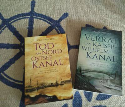 Die Autorin Anja Marschall hat zwei Kanalkrimis Tod am Nord-Ostsee-Kanal und Verrat am Kaiser-Wilhelm-Kanal geschrieben. Im Mittelpunkt dieser historischen Romane steht Kriminalinspektor Hauke Sötje, ein ehemaliger Kapitän, vielgereist und mit reichem Wissensschatz. Der erste Kanalkrimi mit dem Titel Tod am Nord-Ostsee-Kanal klingt ein wenig nach Agatha Christies Tod auf dem Nil, doch diese Assoziation führt in die Irre. Es geht in diesem Krimi um einen mysteriösen Todesfall bei den Bauarbeiten an der Kanalschleuse in Brunsbüttel im Jahr 1894, also ein Jahr vor Fertigstellung und Eröffnung des Kanals durch Kaiser Wilhelm II.. Der zweite Kanalkrimi spielt zwei Jahre später 1896 . Verrat am Kaiser-Wilhelm-Kanal handelt von Spionage und Machenschaften diverser Geheimdienste.