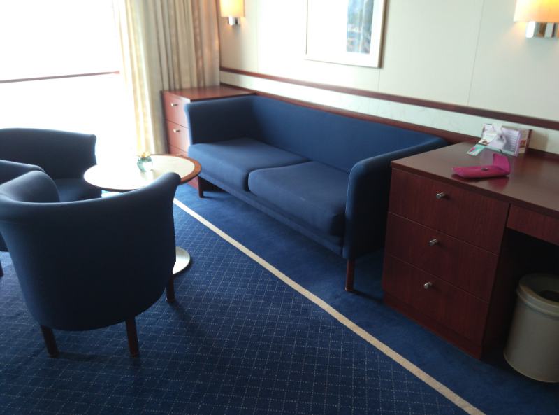 Sitzgruppe und Schreibtisch in der Standardaußensuite